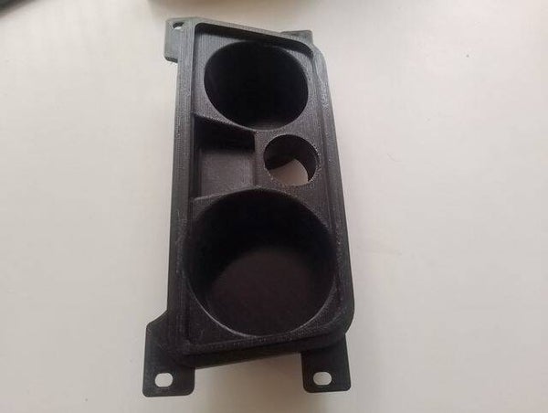 Mukiteline pulloille ja tölkeille, tilaa kolikoille. Tupakansytyttimen pistoke. Sytytin ei sisälly. Teline kiinnitetään neljällä tehdasruuvilla. Myydään maalaamattomana.