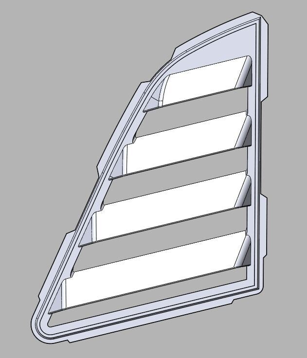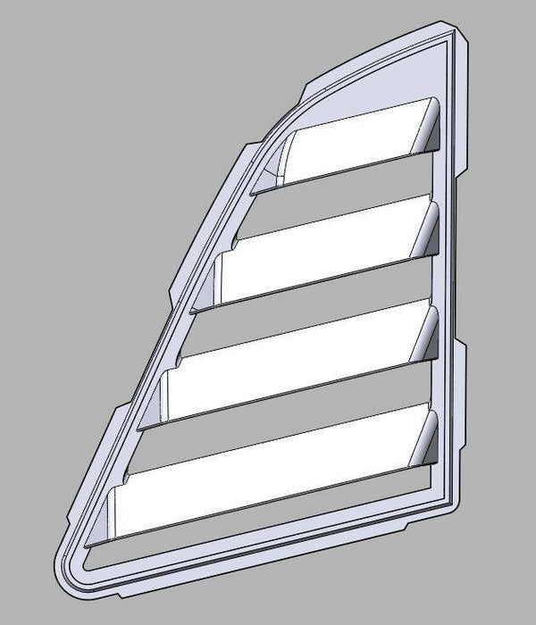 Takaikkunan säleiköt asennetaan ilman kiinnitystarvikkeita tai ajoneuvon muutoksia. Osan huuli sopii tiivistelistan taakse. Myydään maalaamattomana. Myydään pareittain.
