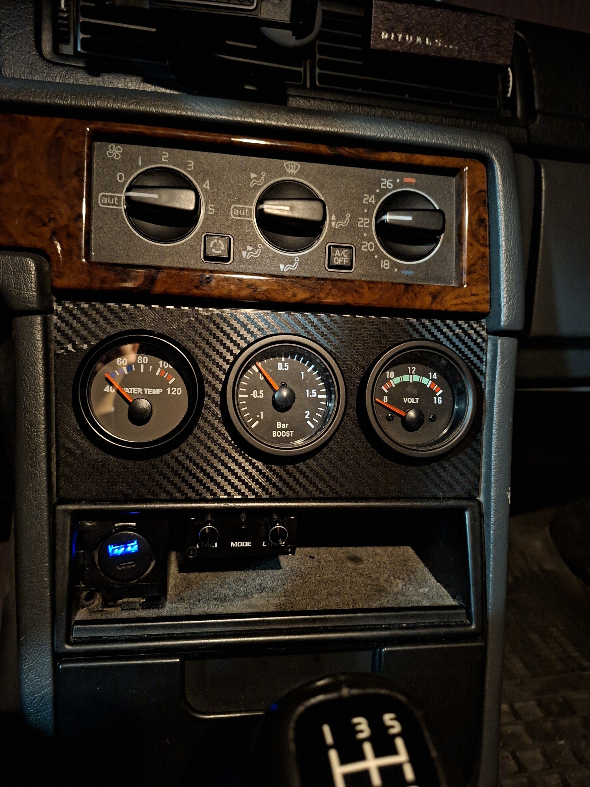 Tämä mukautettu 3-mittarin kotelo korvaa tehdasradion ja tarjoaa siistin, tehdasmaisen ratkaisun kolmen 52 mm mittarin asentamiseen.